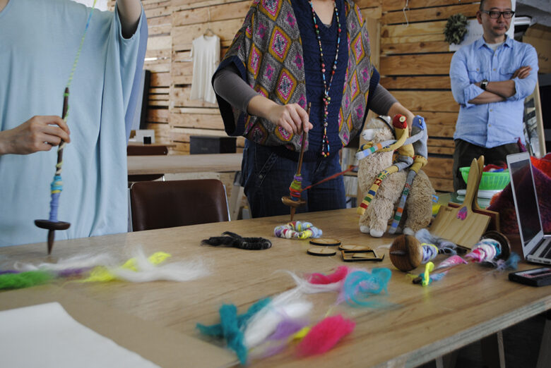 coromozaでは初となる糸紡ぎのワークショップ。